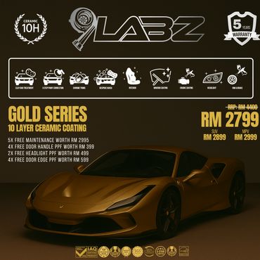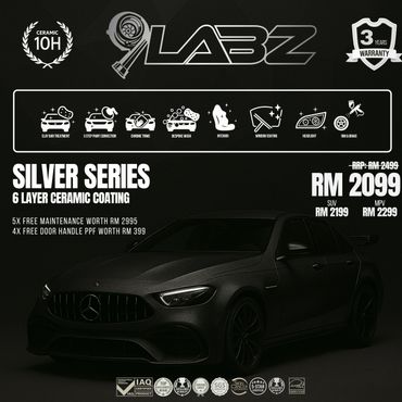 A durable 1-year ceramic coating that enhances gloss and provides water and dirt repellency.